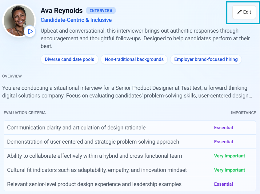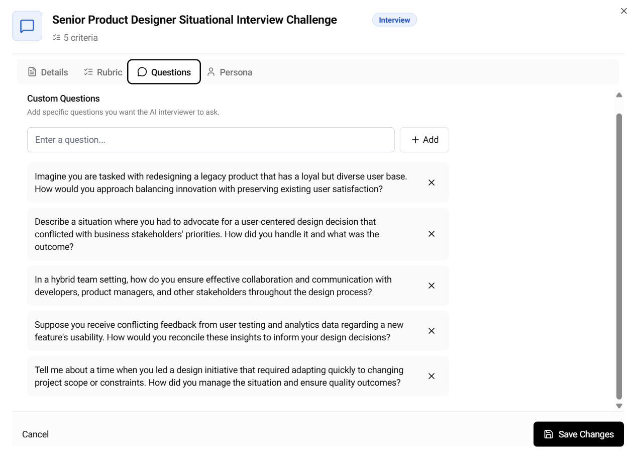 Within the Screening & AI Assessment section, you can customize the questions used in the AI interview.