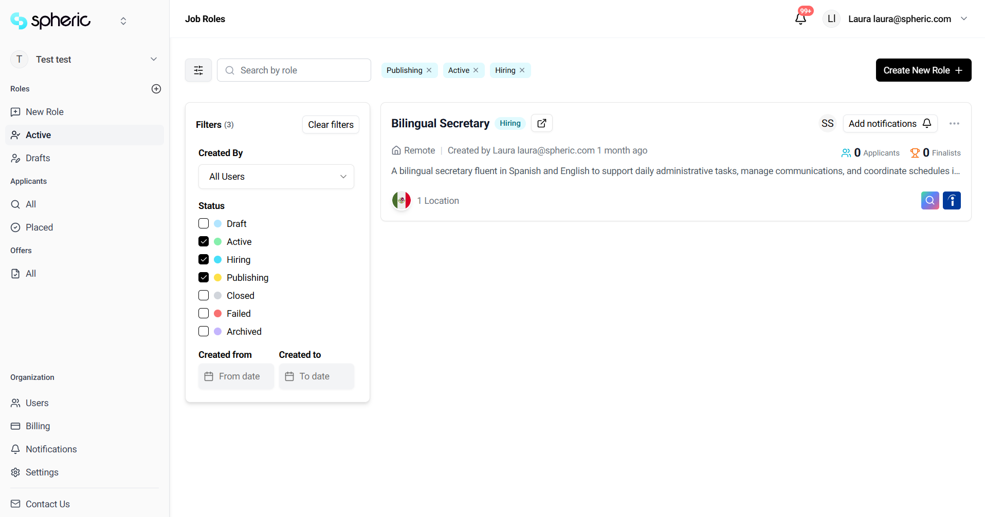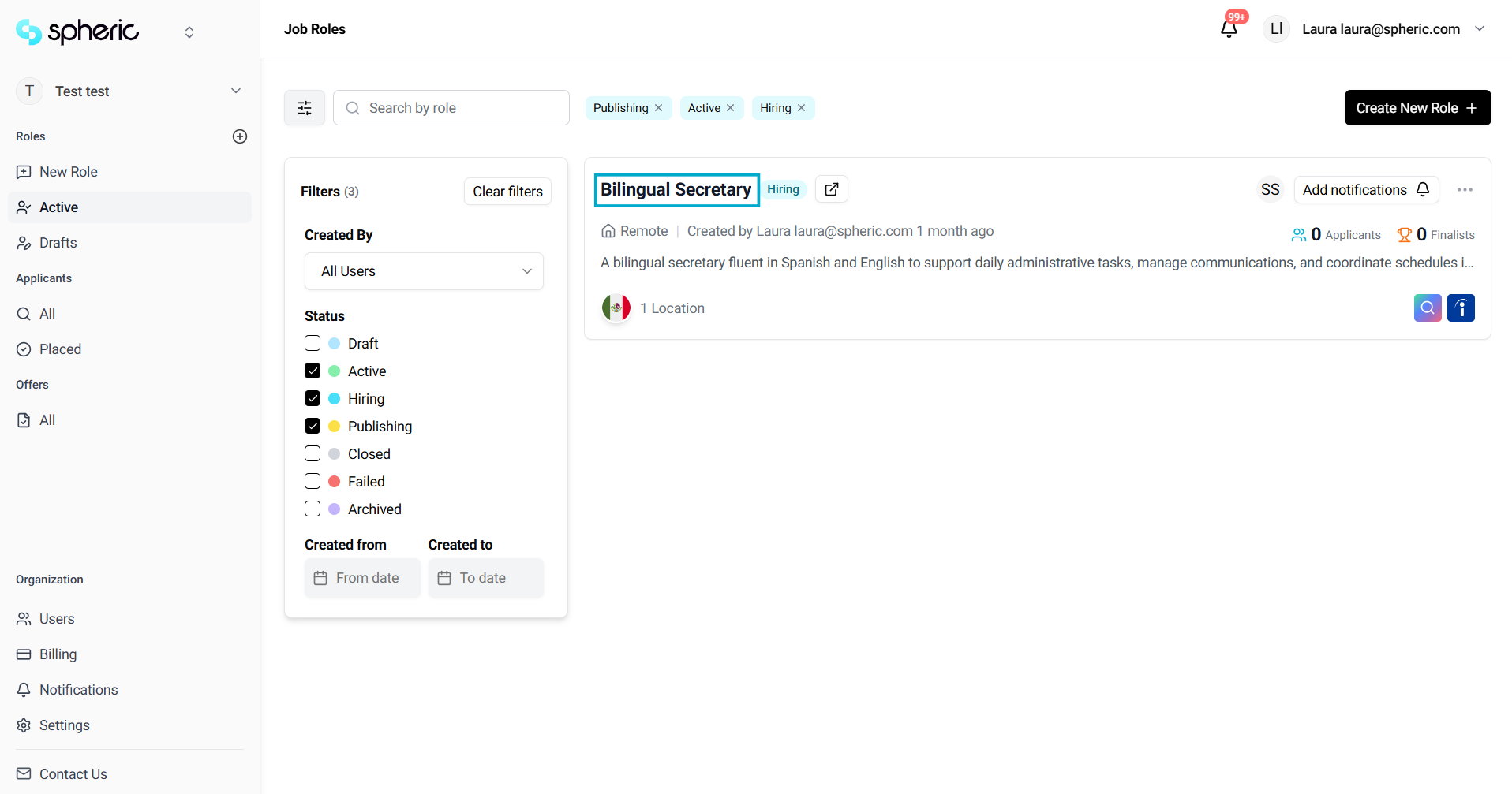 Click on the role where the candidate is located.