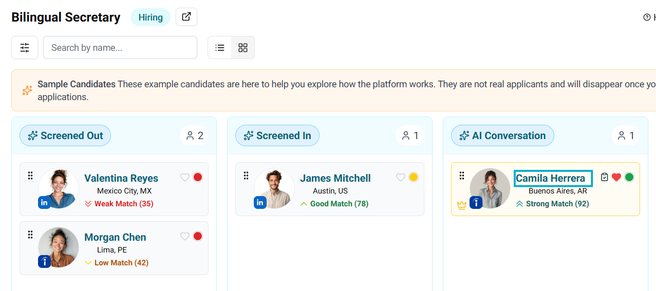 Click on the candidate you want to review.