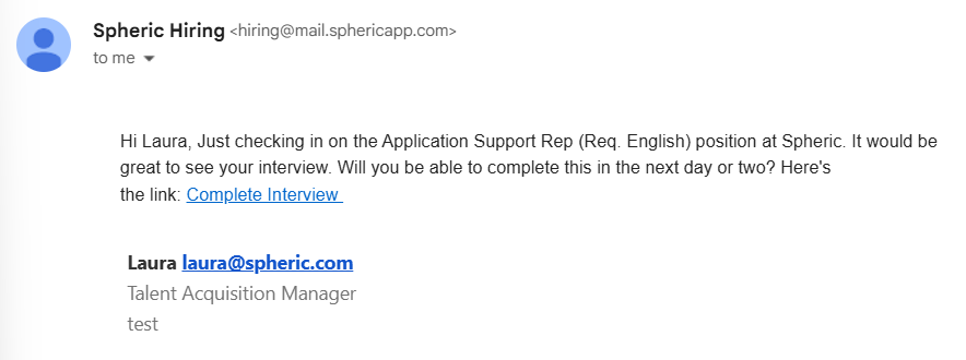 - They receive an email invitation to start the AI interview
