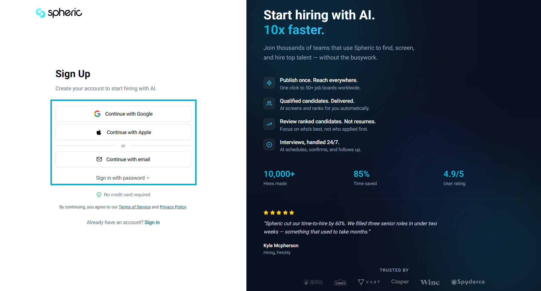 Or go directly to https://app.spheric.com/signup.