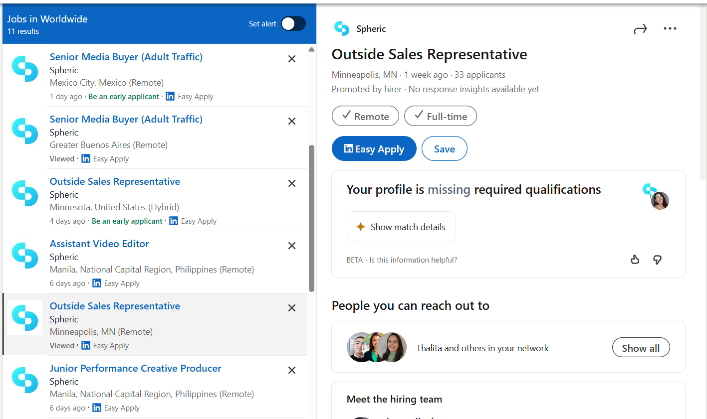 - Your role is posted through Spheric’s job board distribution