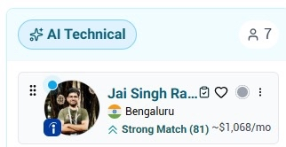 - A blue indicator/button will appear next to the candidate’s profile picture, showing that there is an unread message